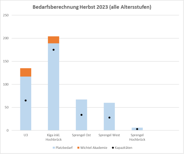 In der Zusammenschau muss davon ausgegangen werden, dass in keiner der drei Altersgruppen der Bedarf an Betreuungsplätzen gedeckt werden kann.