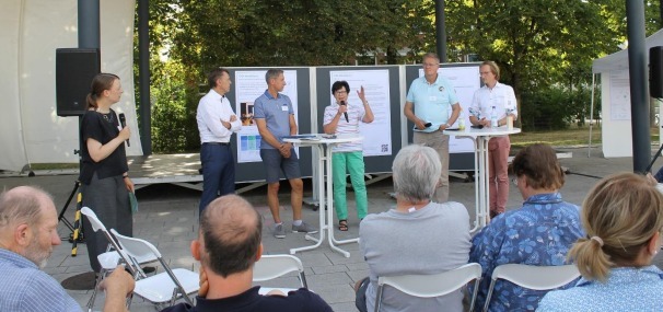 Bei sommerlichen Temperaturen trafen sich rund 50 Interessierte zum Austausch, der unter freiem Himmel unter dem Marktdach auf dem Bürgerplatz Oberschleißheim stattfindenden Veranstaltung.