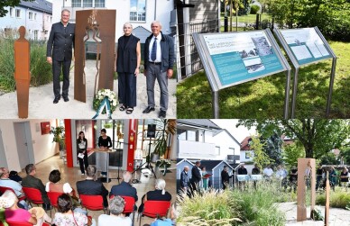 Garchings Erster Bürgermeister Dr. Dietmar Gruchmann sprach in seiner Begrüßungsrede beim Festakt in der Grundschule Hochbrück von der „Pflicht zur Erinnerung“, die Künstlerin Lioba Leibl, die die Stele geschaffen hat, ergänzte: „Es gibt nicht zu viele Denkmäler. Im Gegenteil, es gibt immer noch zu wenige!“ Der Garchinger Ortschronist und Heimatpfleger Dr. Michael Müller betonte, wie wichtig es sei, dass die Menschen um die Vergangenheit der Orte, in denen sie wohnen, wissen. Zwei Schülerinnen des WHG stellten beispielhaft die Biografien und Schicksale einiger Zwangsarbeiter vor. Im Anschluss wurde der neue und wichtige Gedenkort unter Anteilnahme aller Gäste feierlich gesegnet.